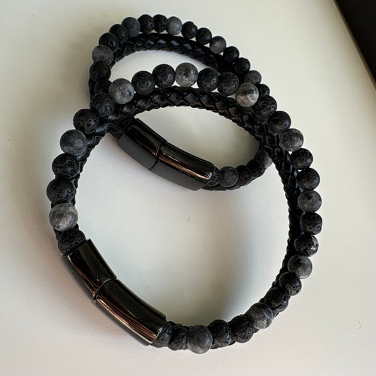 Pulsera doble de piedra lava y labradorita