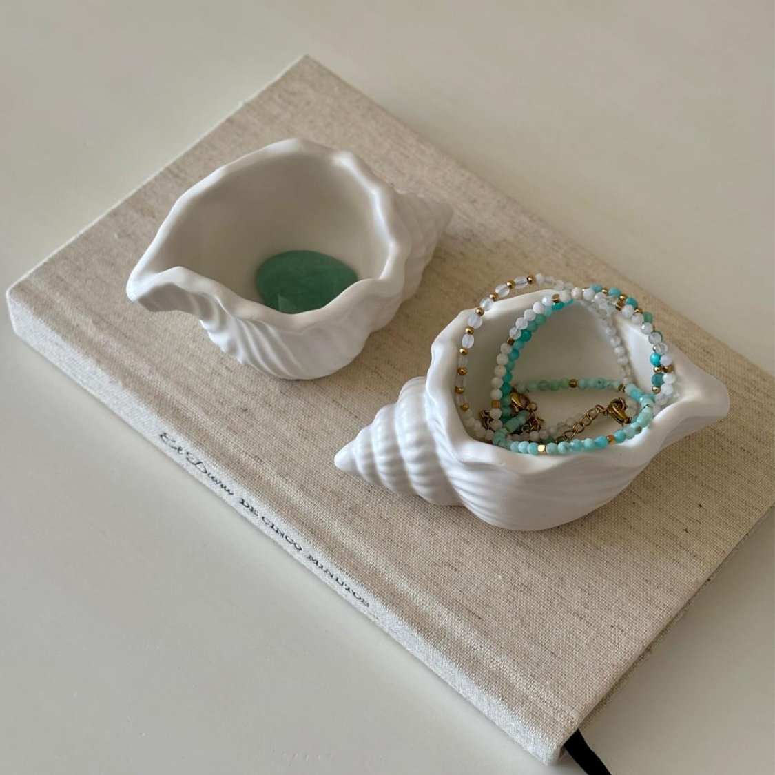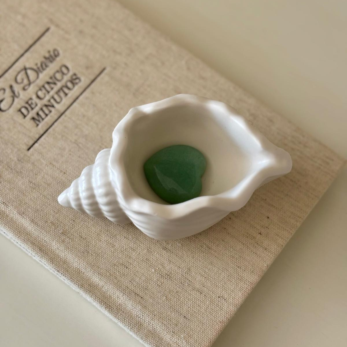 Hermosa caracola decorativa, versátil para colocar en cualquier espacio. Puedes usarla como mini cuenco para cristales, porta joyitas o anillos, o simplemente como objeto decorativo.
