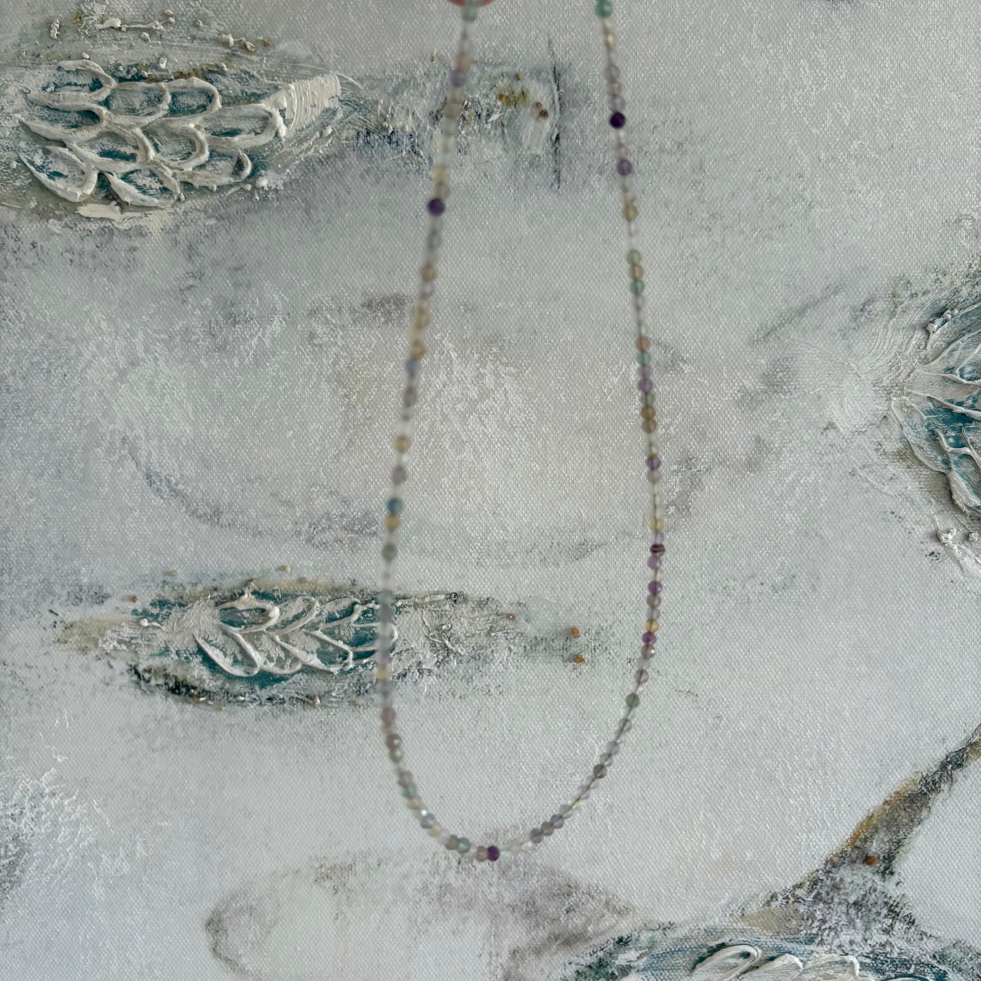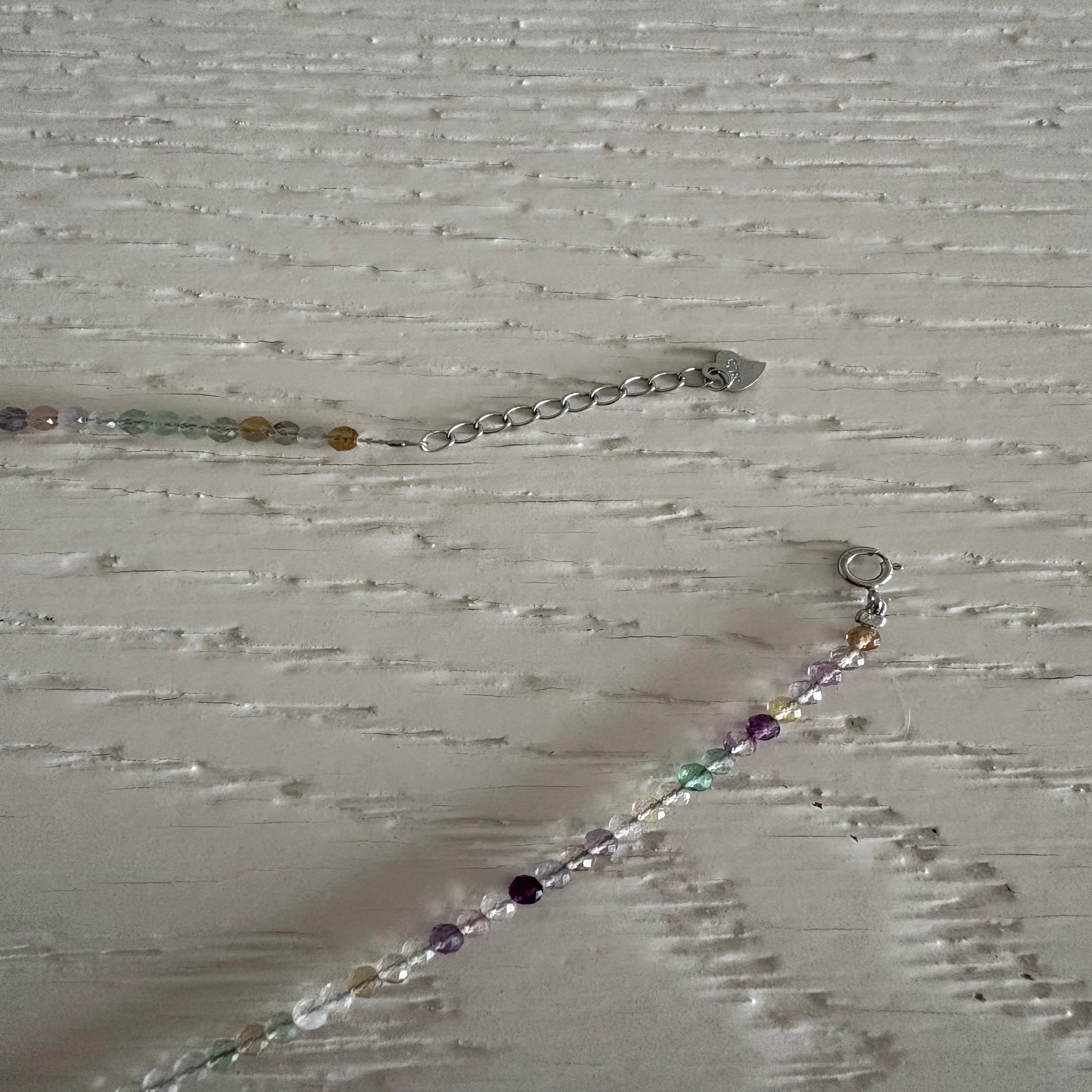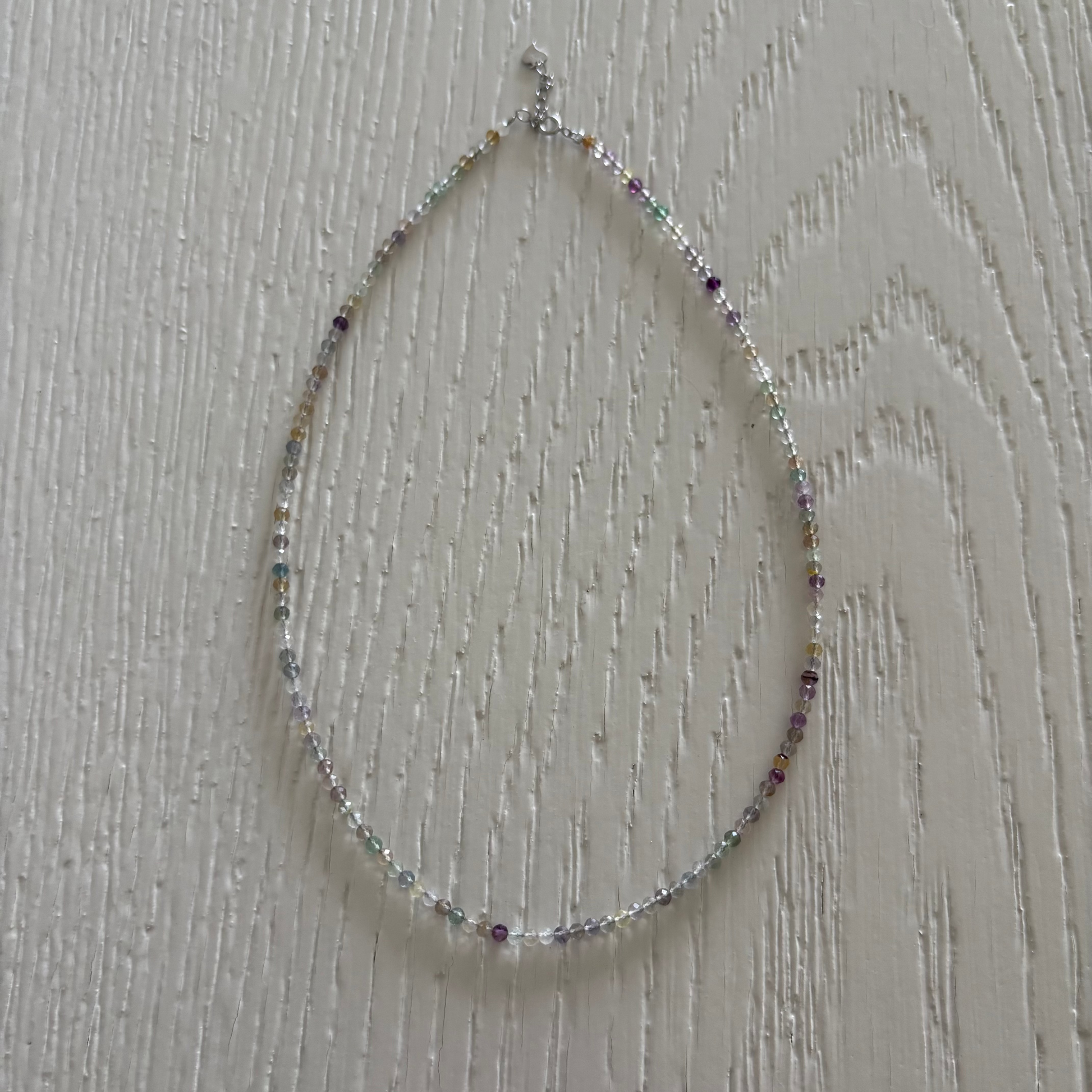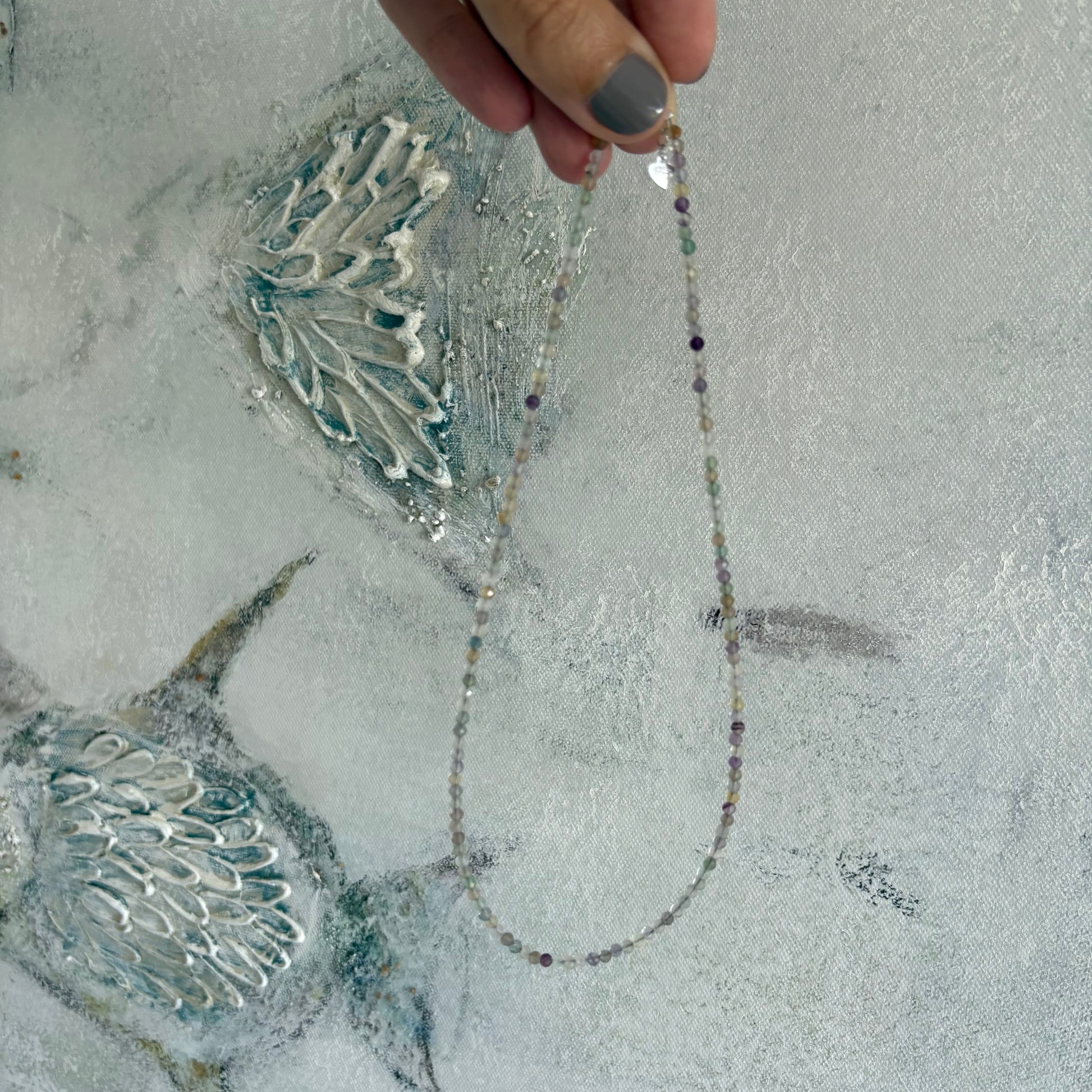Collar tipo gargantilla de fluorita natural, para que lleves contigo la energía elevada y trabajes con las propiedades de los cristales naturales.