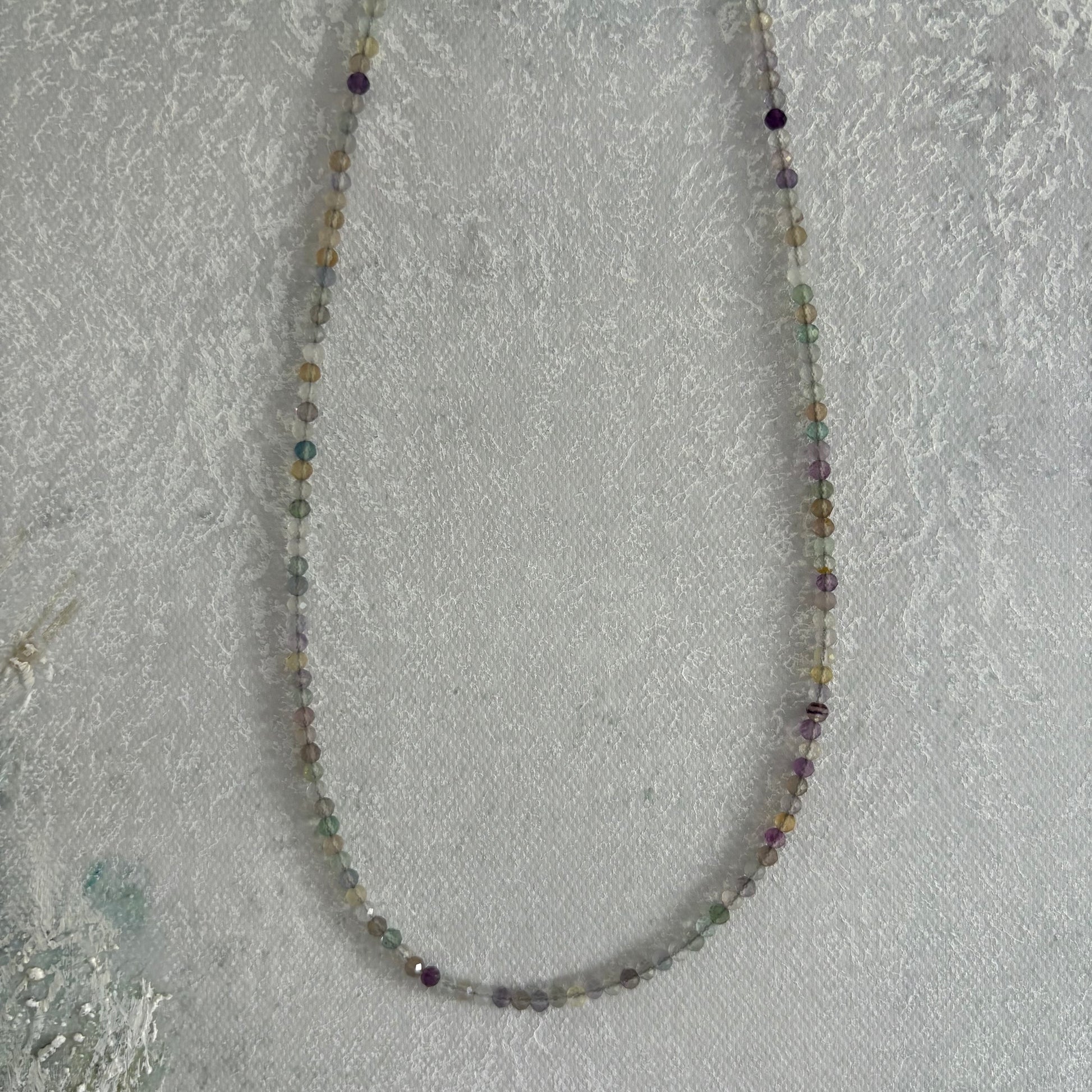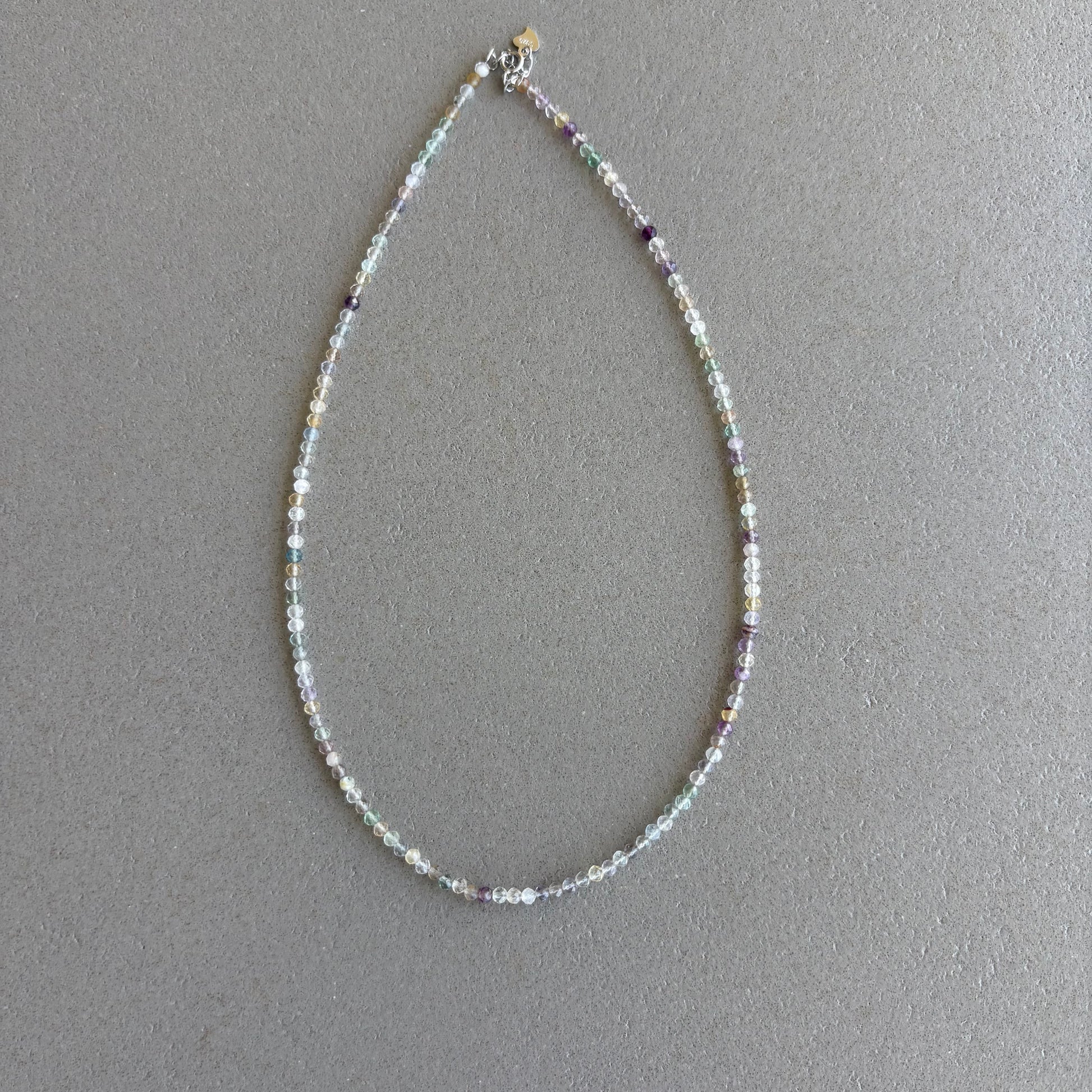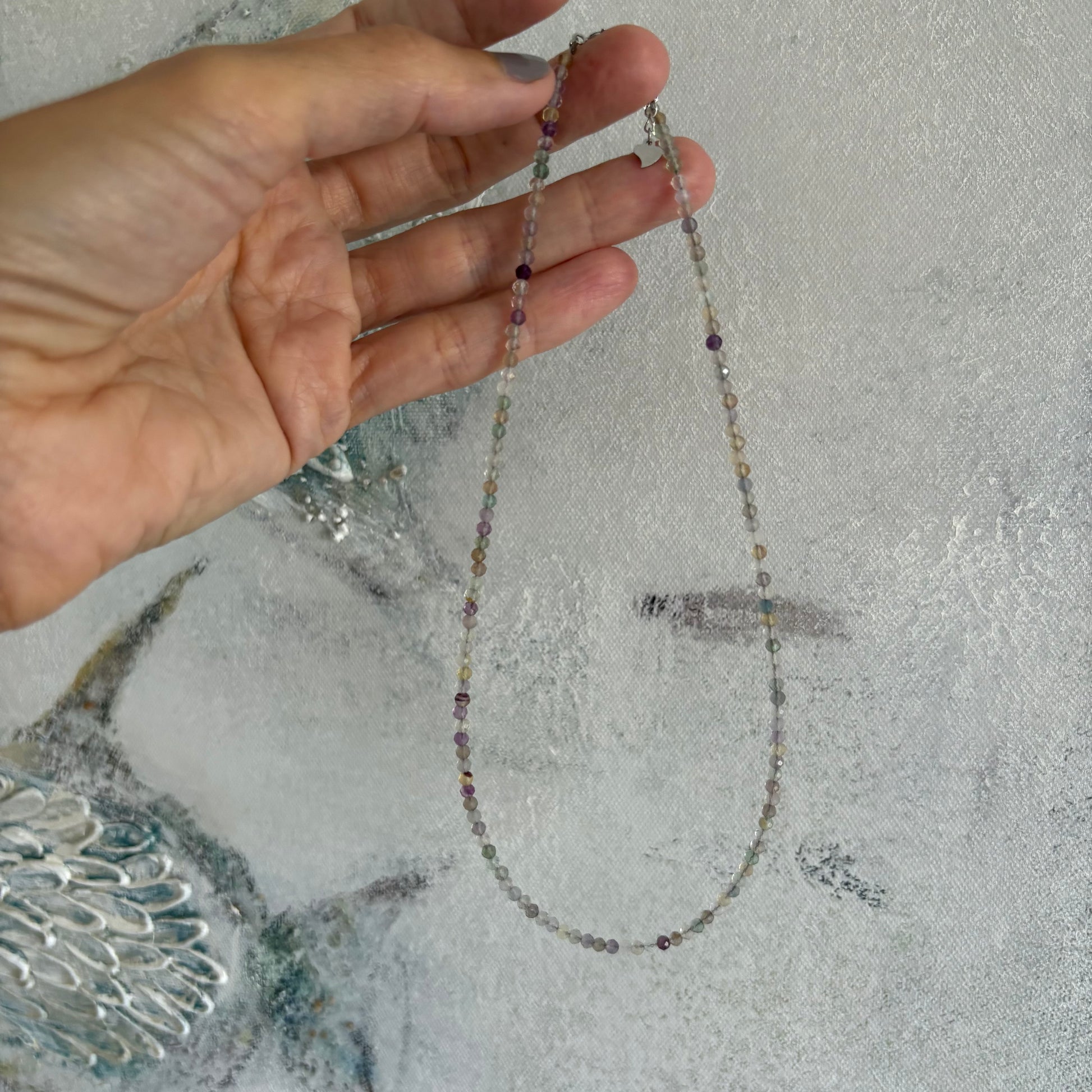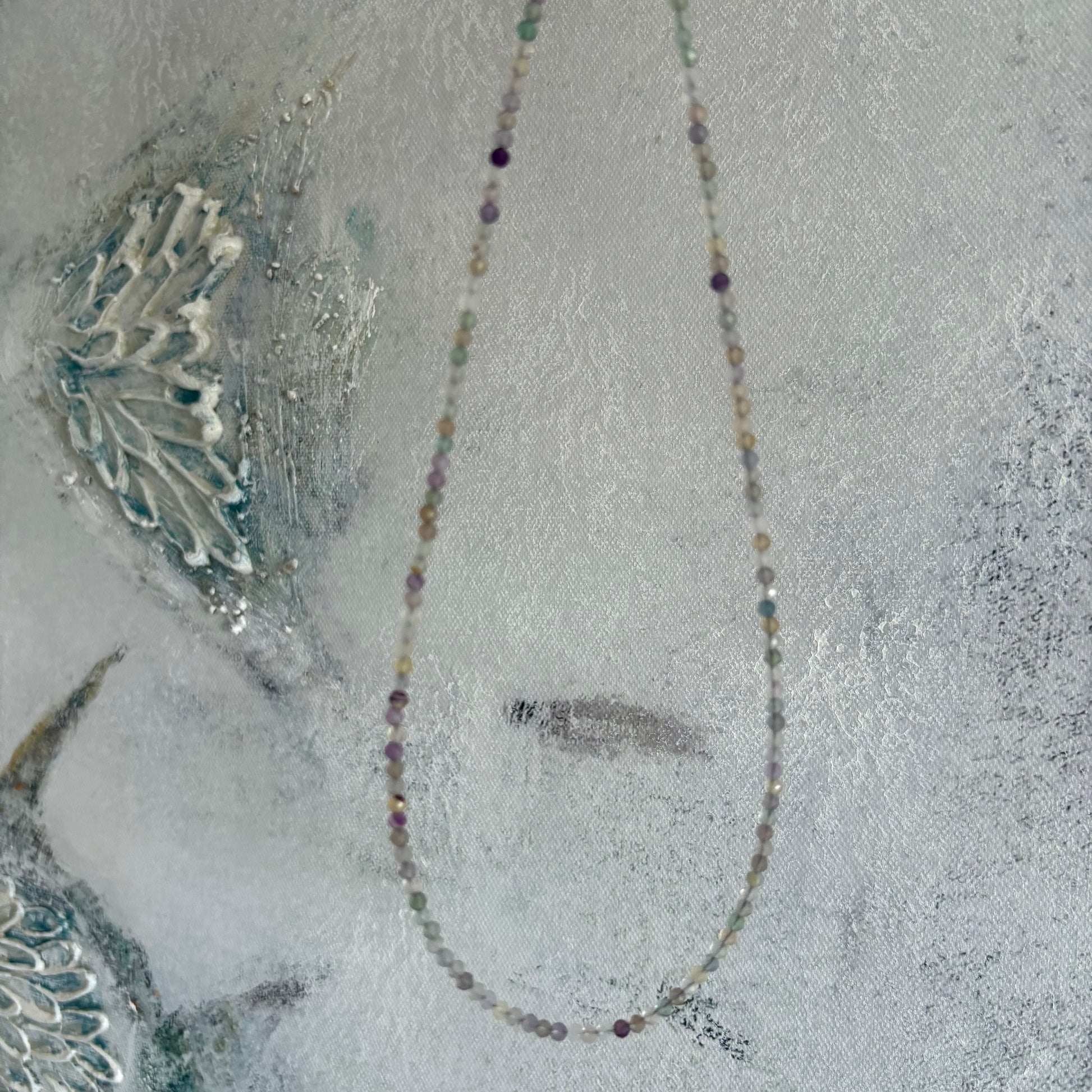 Collar tipo gargantilla de fluorita natural, para que lleves contigo la energía elevada y trabajes con las propiedades de los cristales naturales.