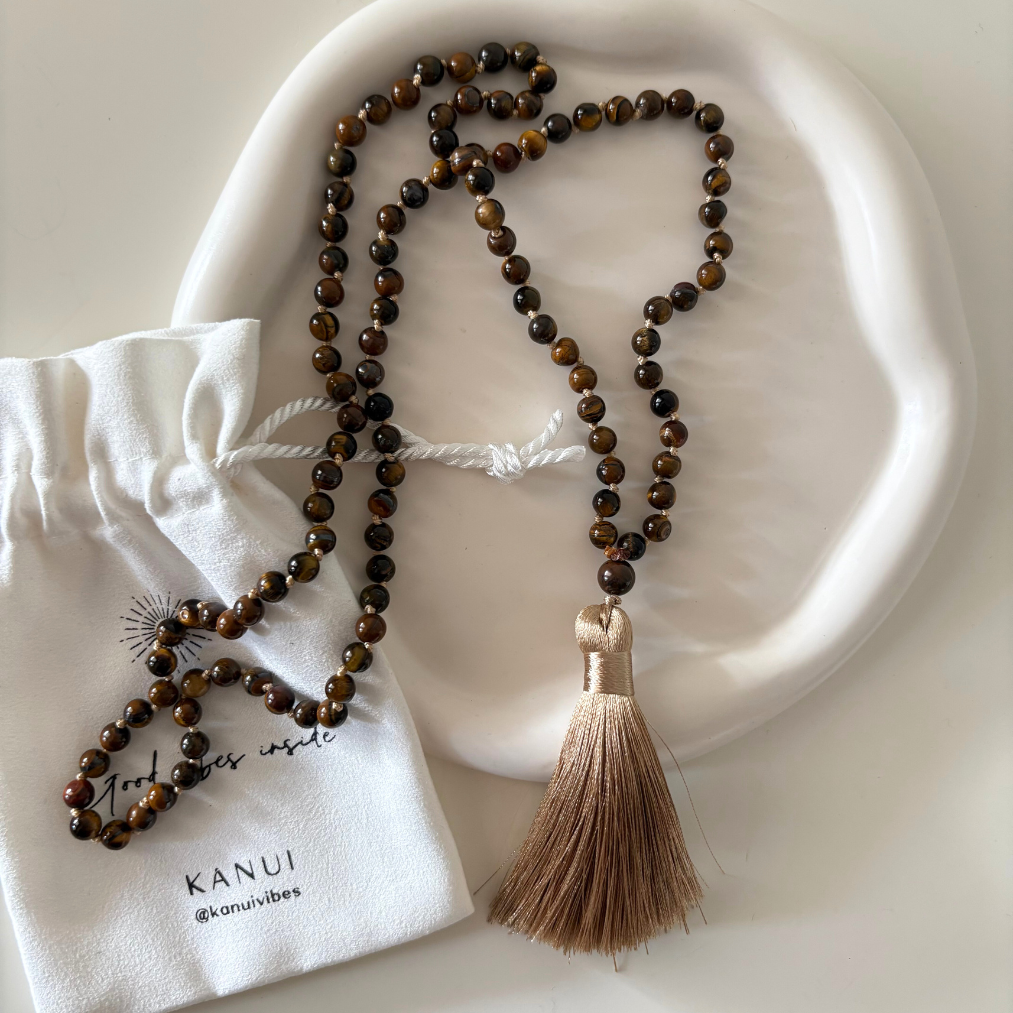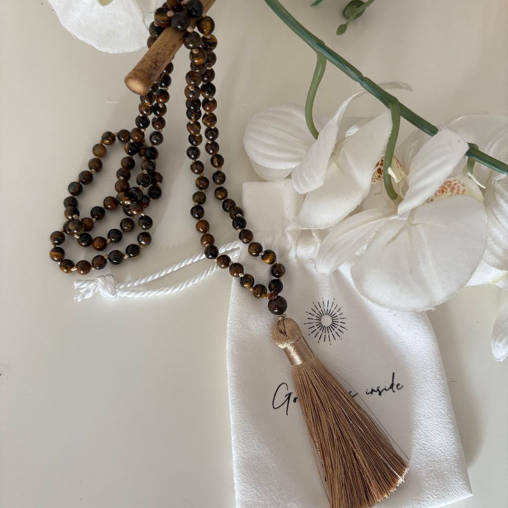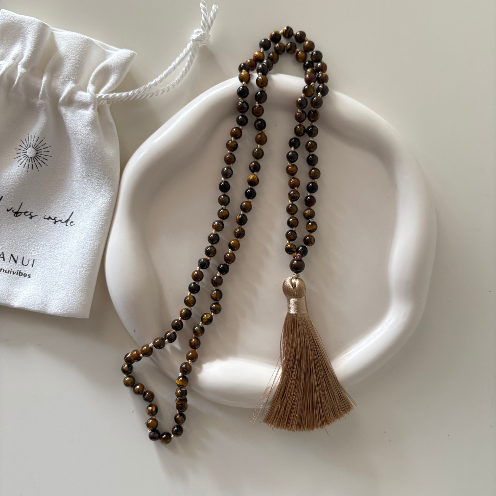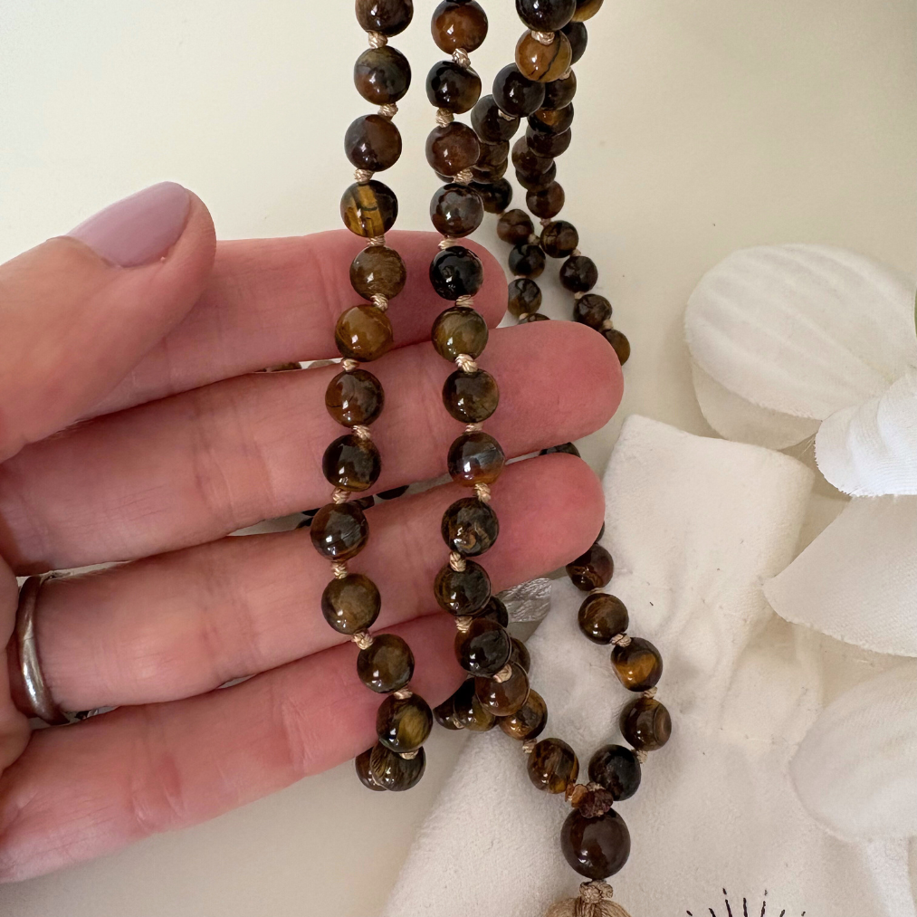 Collar japa mala de 108 cuentas de ojo de tigre natural.