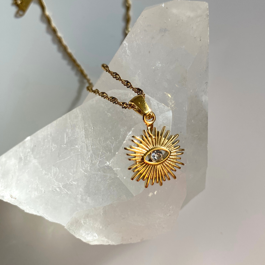 18k gold plated waterproof necklace with pendant symbolizing the eye of intuition .