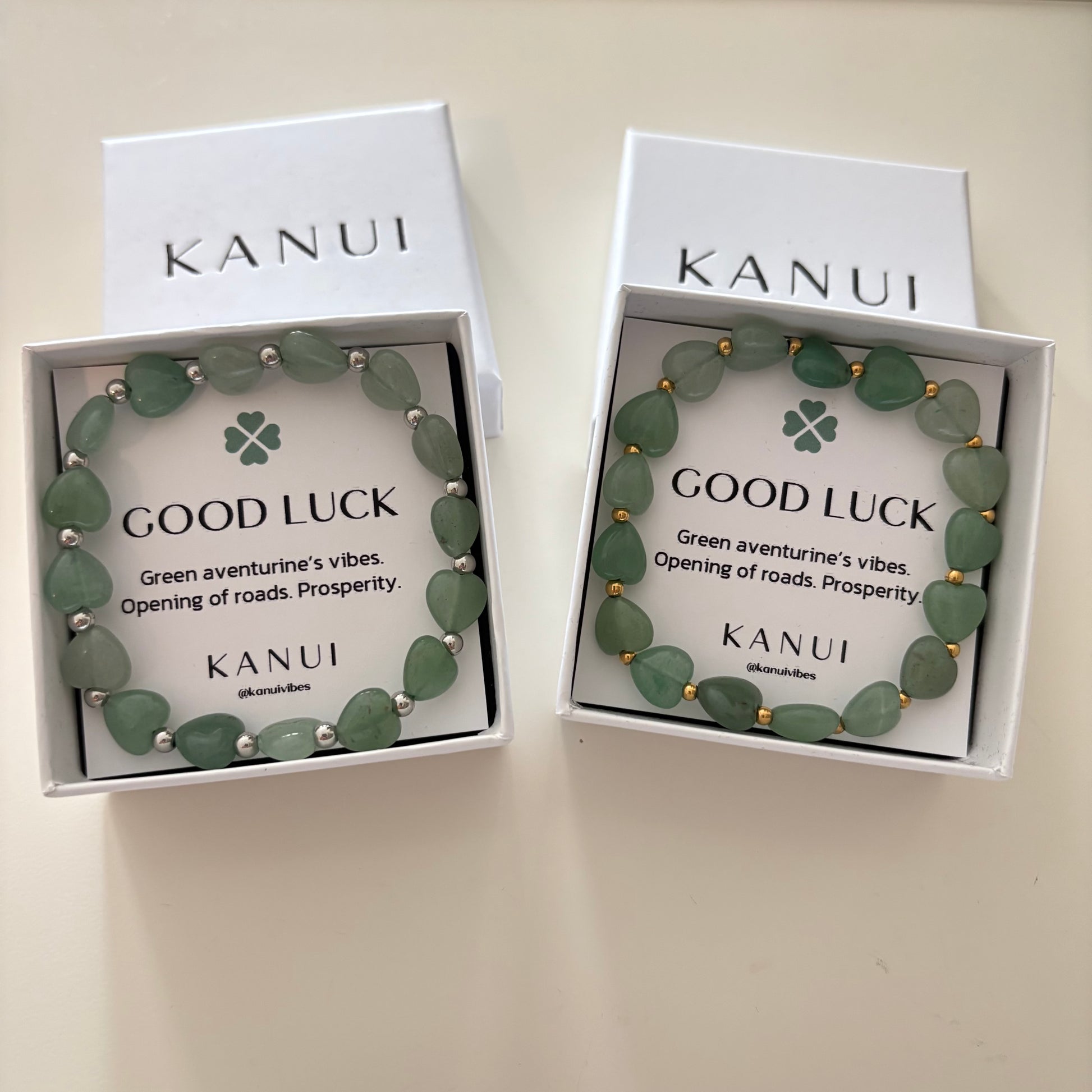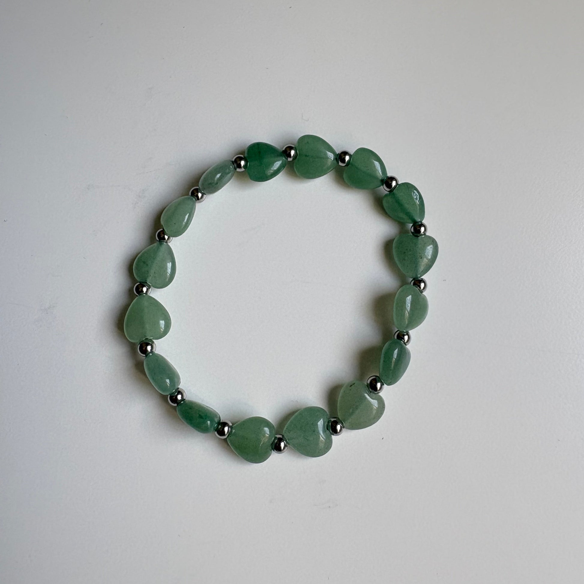 Esta pulsera con corazones de aventurina verde natural está pensada para acompañarte atrayendo buena suerte y buena fortuna en tu vida. Conecta con la energía de la prosperidad y el éxito, y se asocia a crecimiento, avances y apertura de caminos en momentos de cambio y expansión.