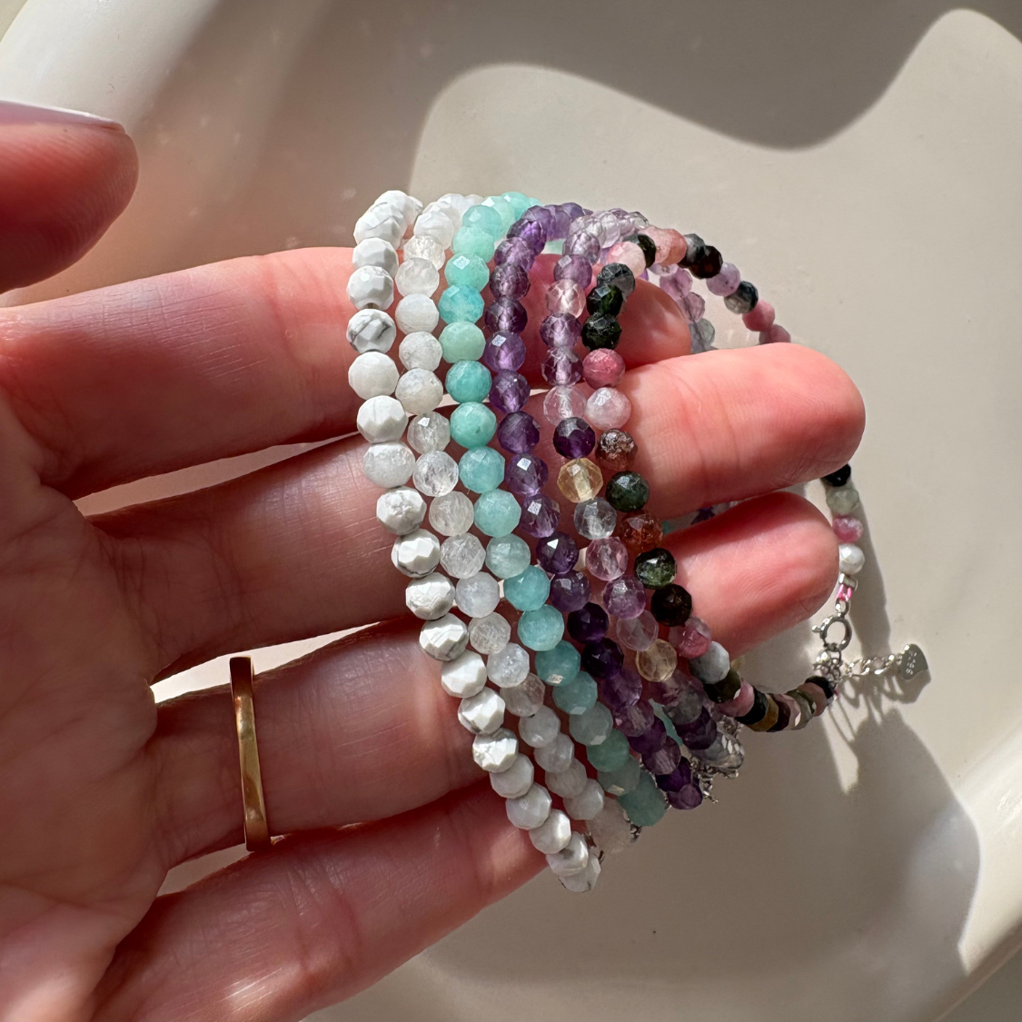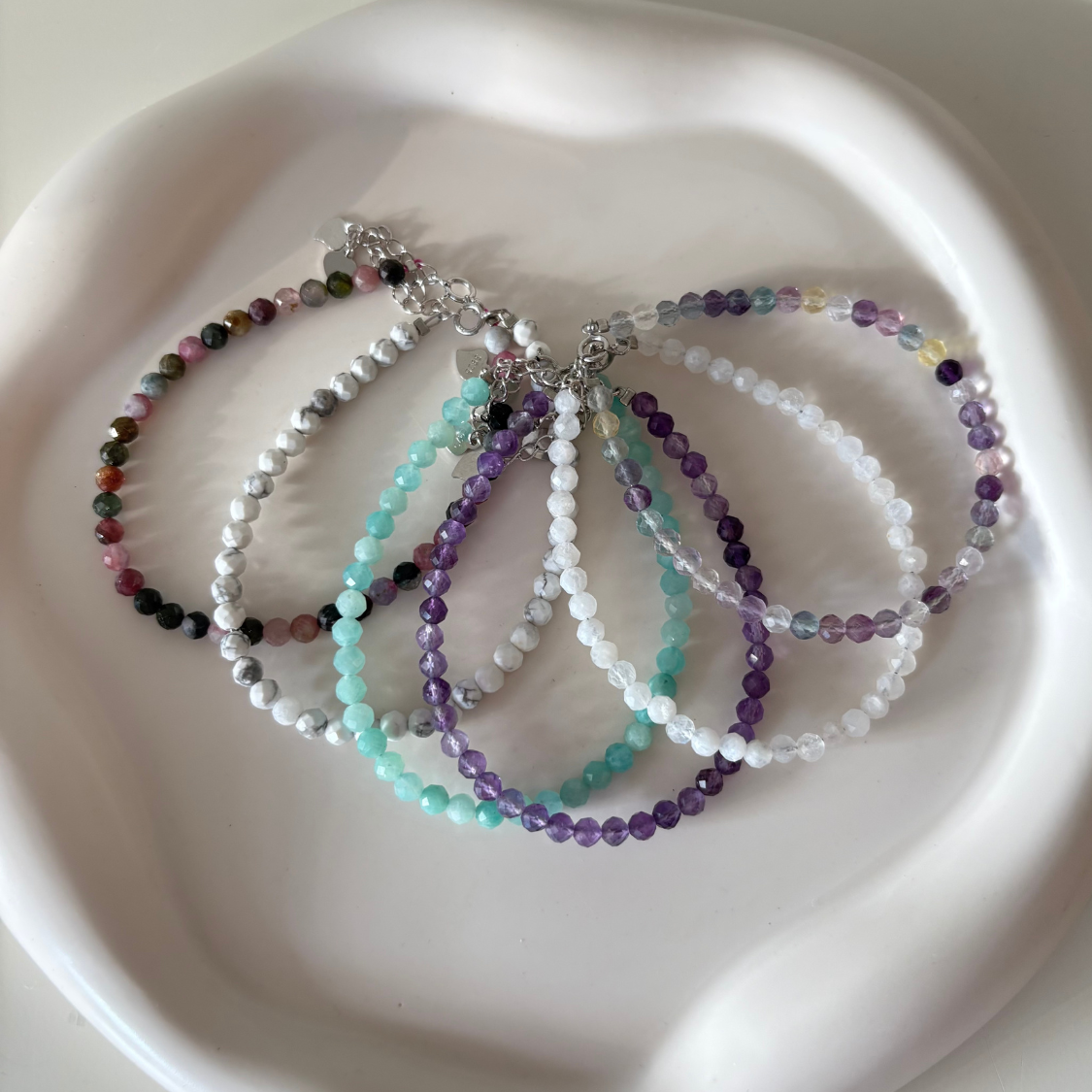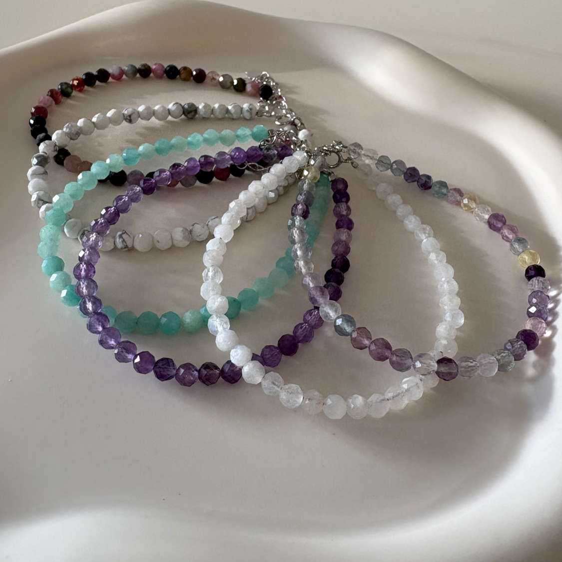 Pulseras de cristales naturales facetados y cierre de plata. Disponibles en seis opciones para que conectes con la energía que estés necesitando o con la que más te guste y llame.