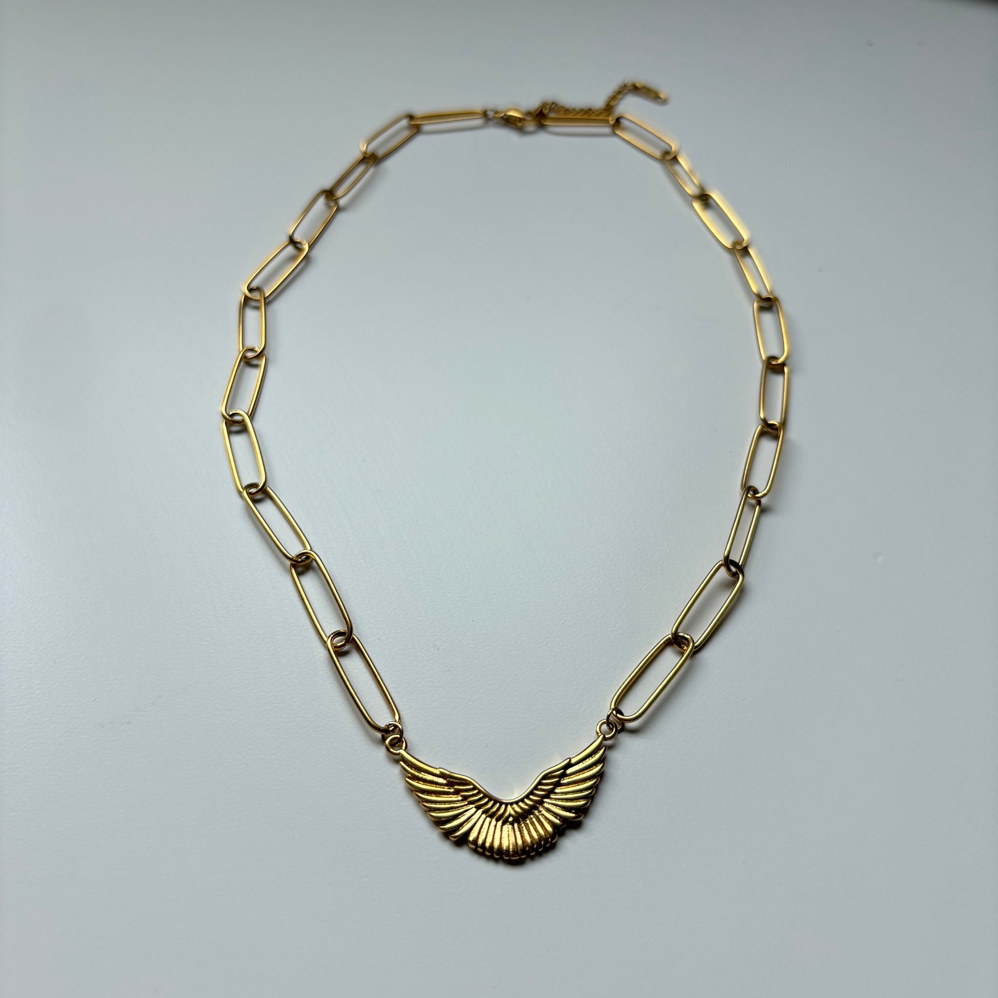 Las alas representan protección, libertad y acompañamiento. Este collar es perfecto para quienes buscan llevar un amuleto con significado, sin dejar de lado el estilo.