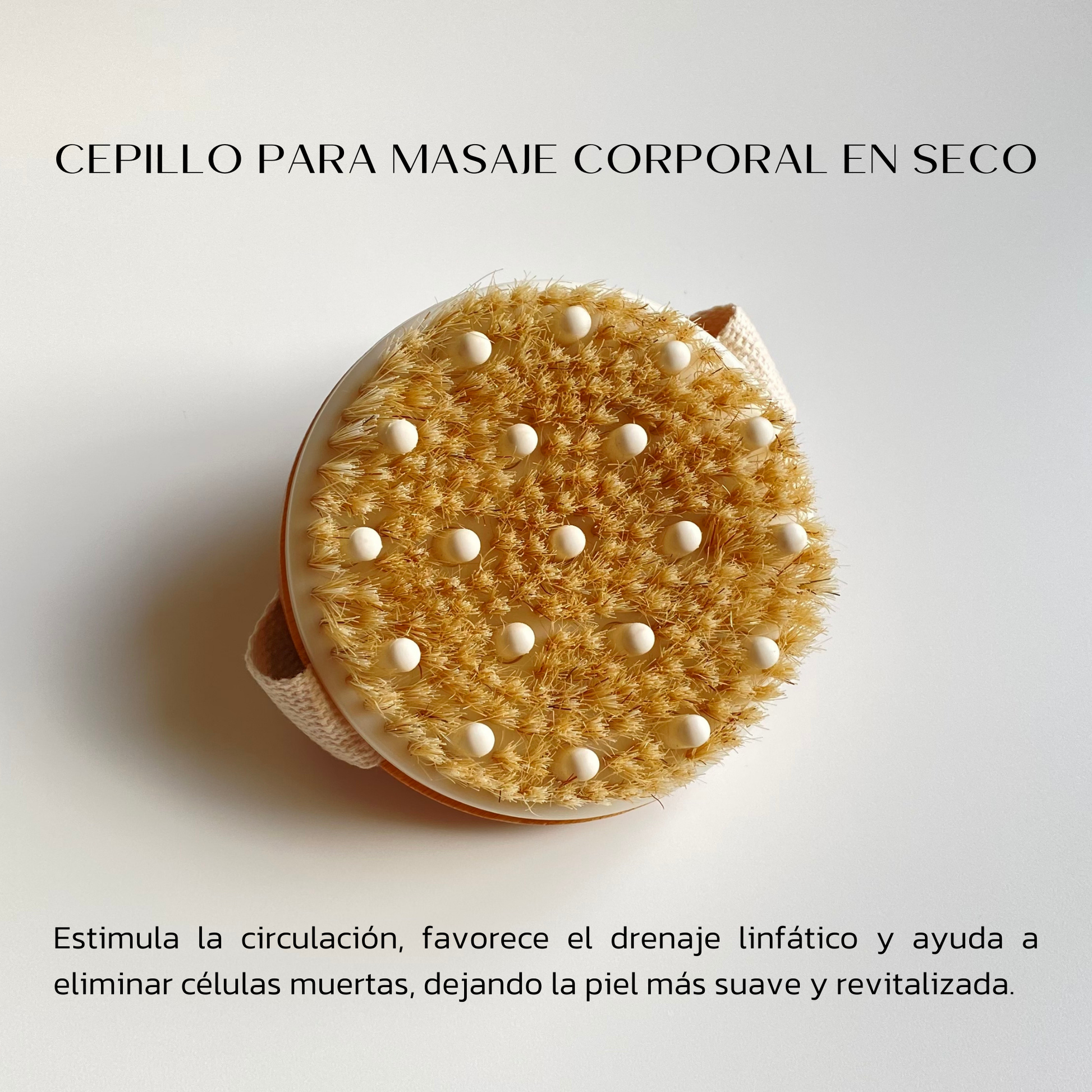 ✓ Cepillo de cerdas naturales (cepillado en seco): El cepillado en seco estimula la circulación, favorece el drenaje linfático y ayuda a eliminar células muertas, dejando la piel más suave y revitalizada.