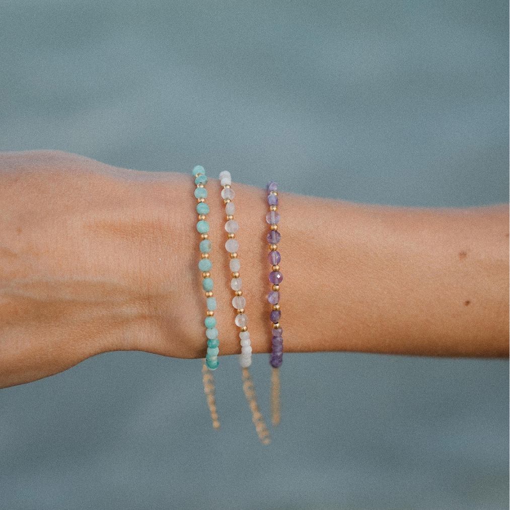Soulshine Bracelets: amatista, piedra luna y amazonita