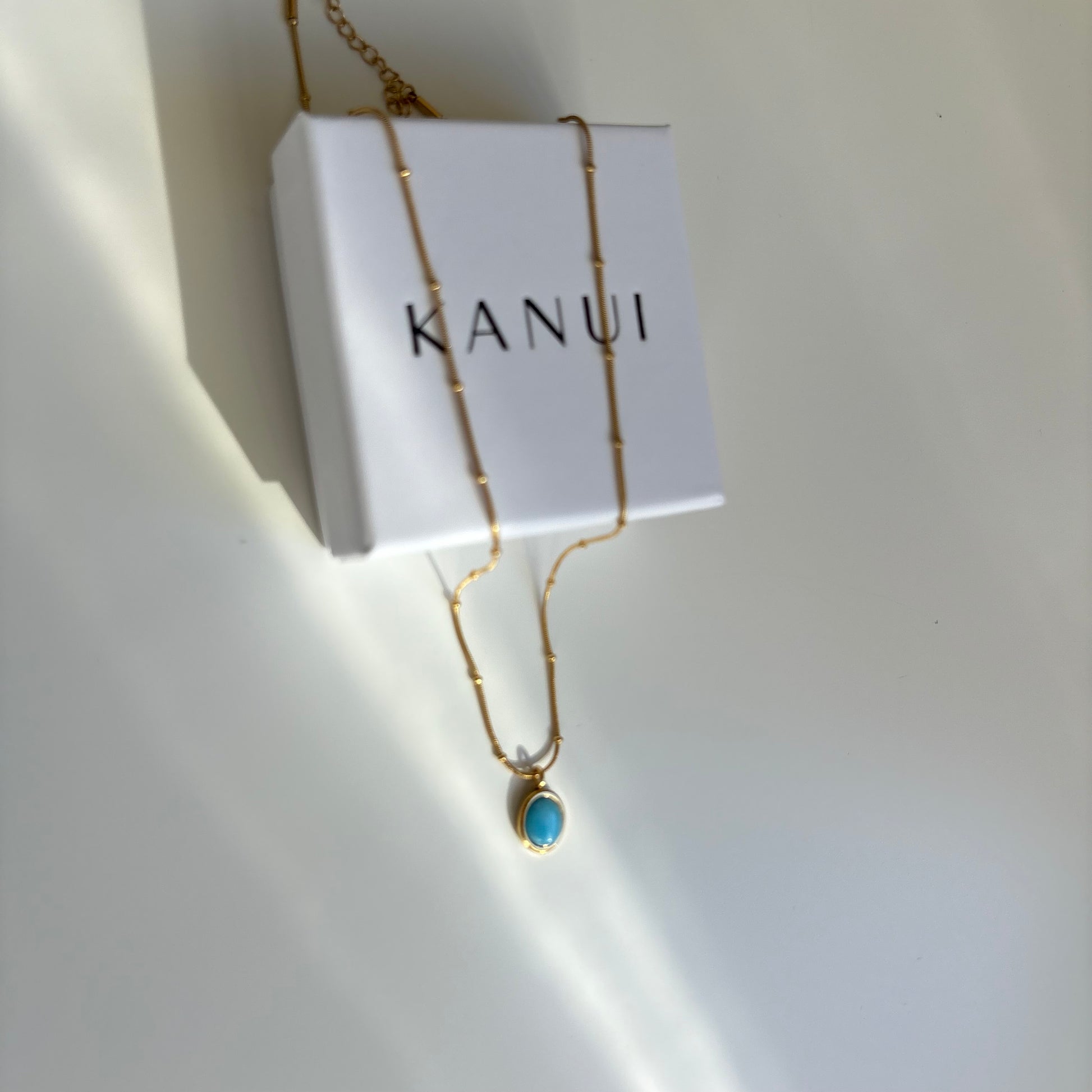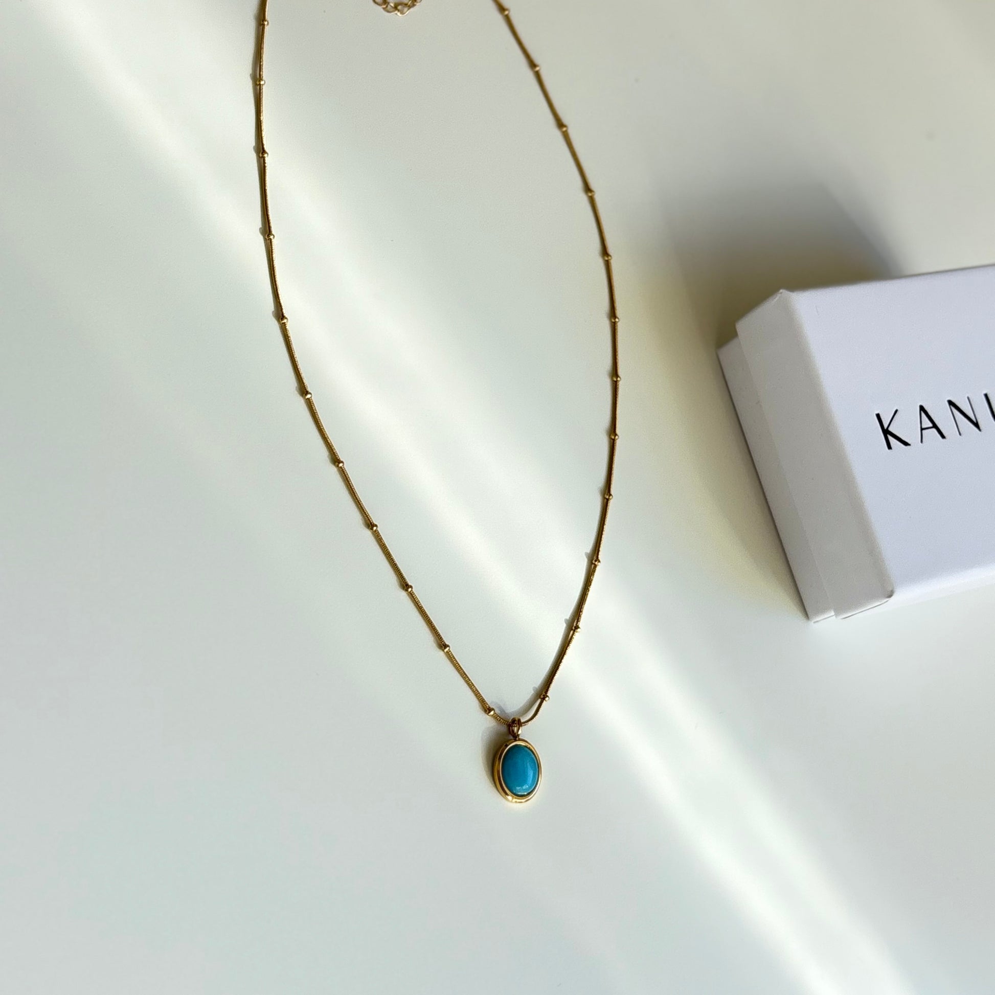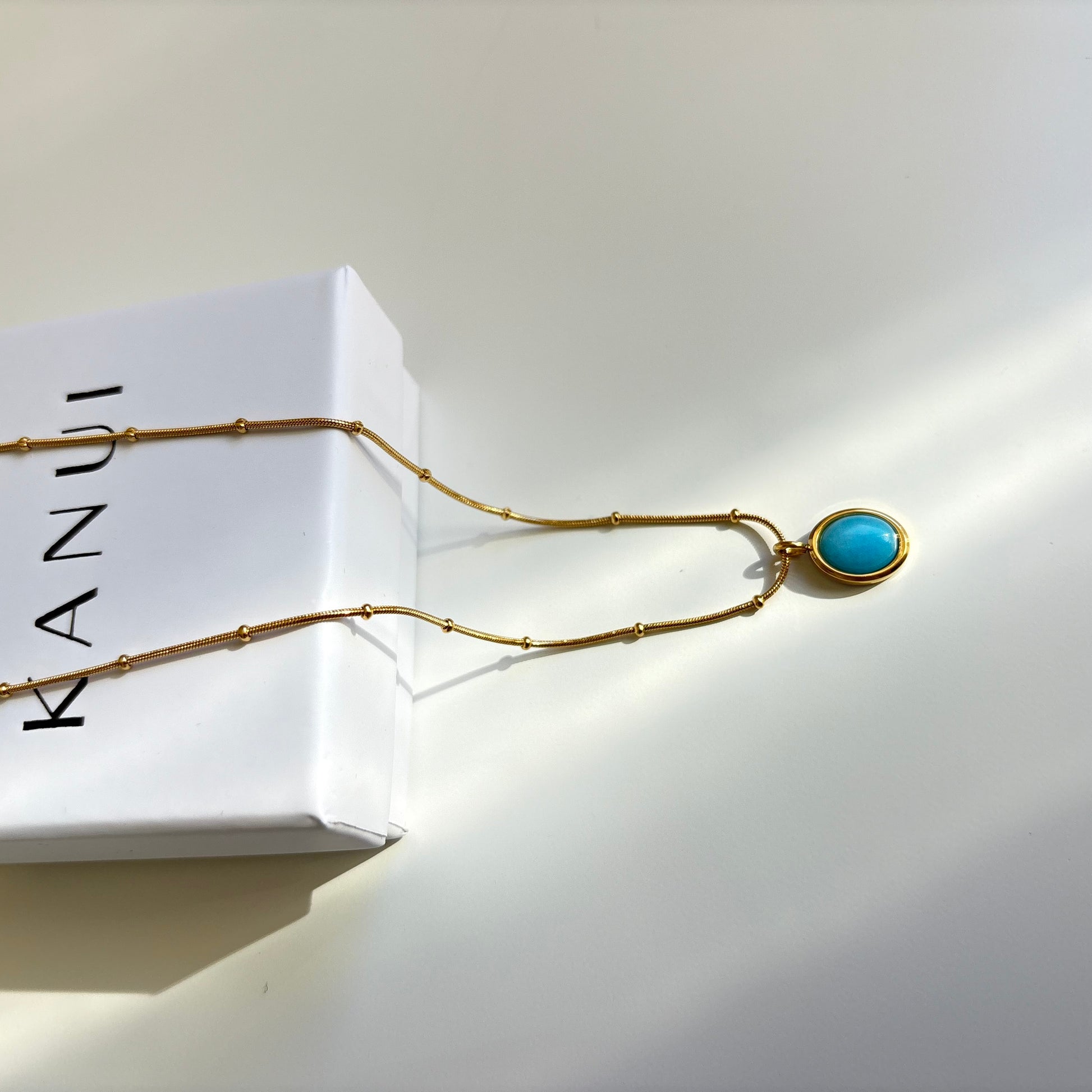 Collar con dije oval de aguamarinan natural, bañado en oro 18k.