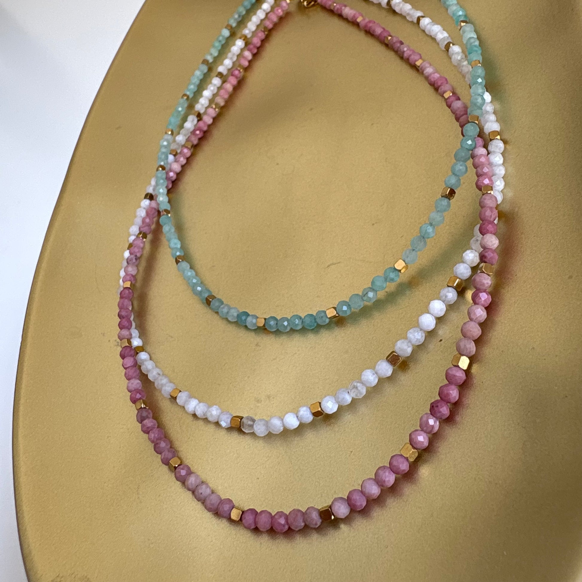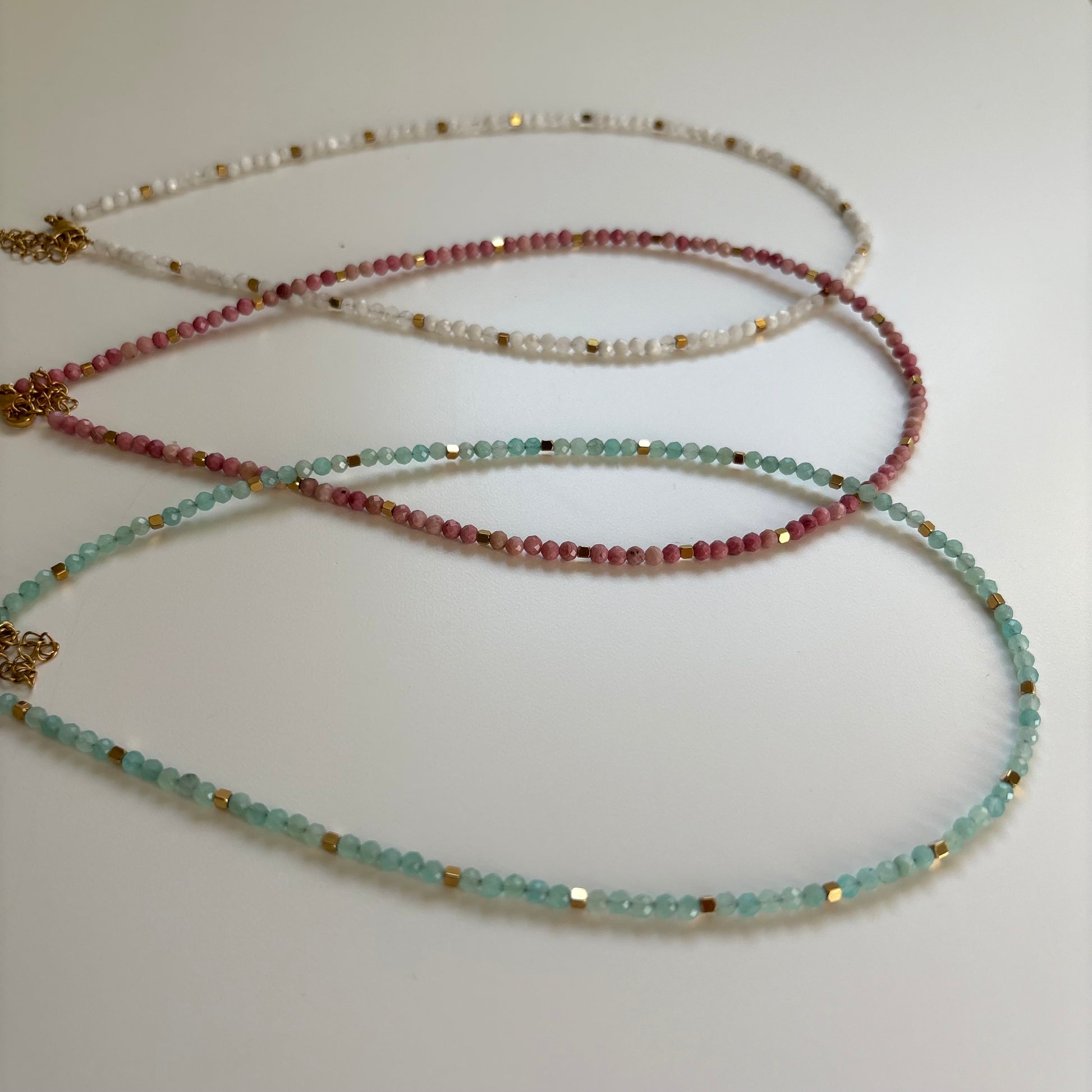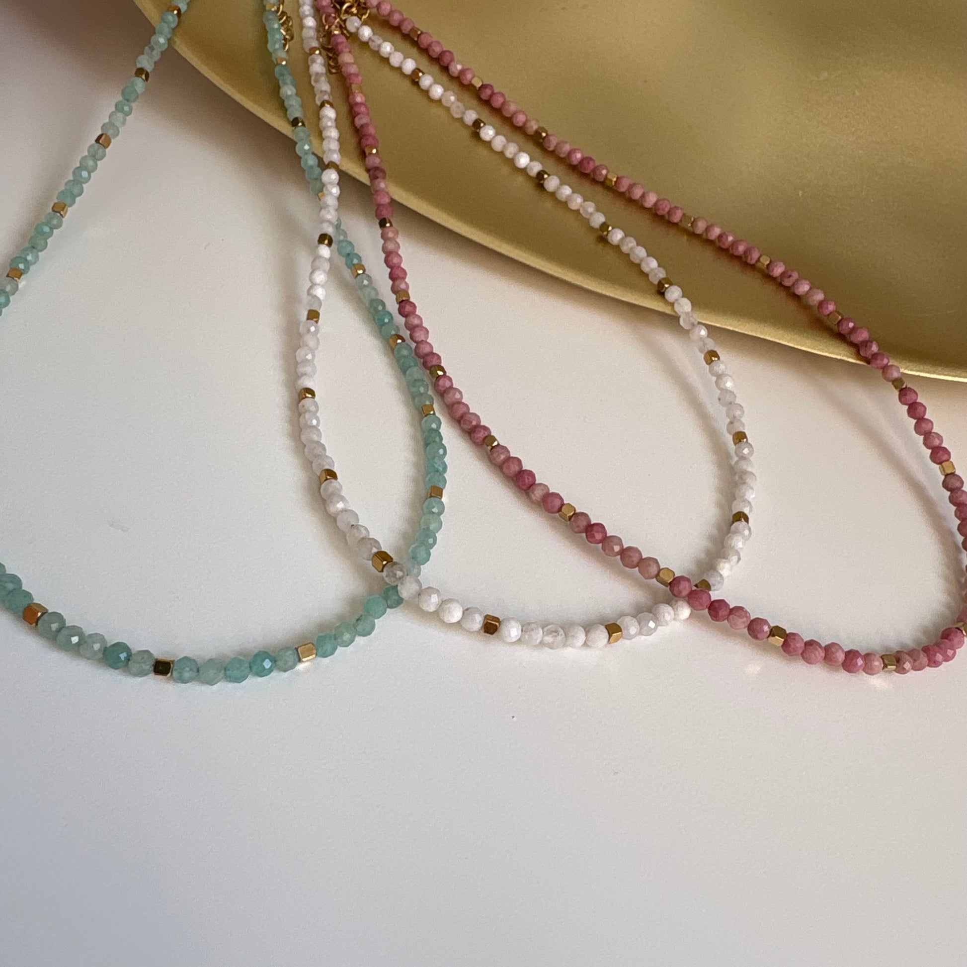 Los collares tipo gargantilla están disponibles en tres cristales, cada uno con su propia frecuencia y propiedades.