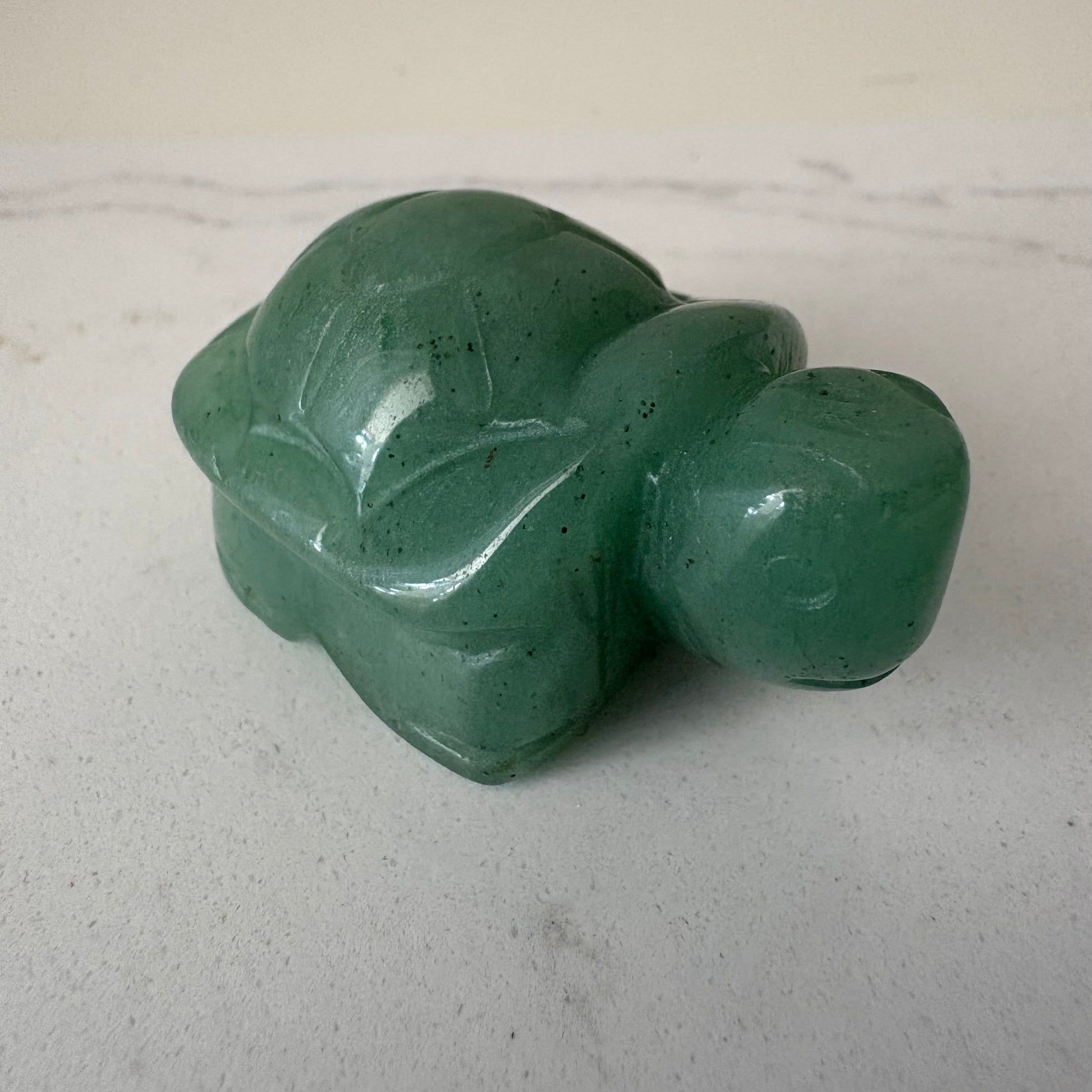 Tortuga tallada de aventurina verde natural que puedes utilizar como amuleto para atraer bienestar, estabilidad y prosperidad a tus espacios. Además, la figura de la tortuga simboliza la sabiduría, la paciencia, la protección y la longevidad.